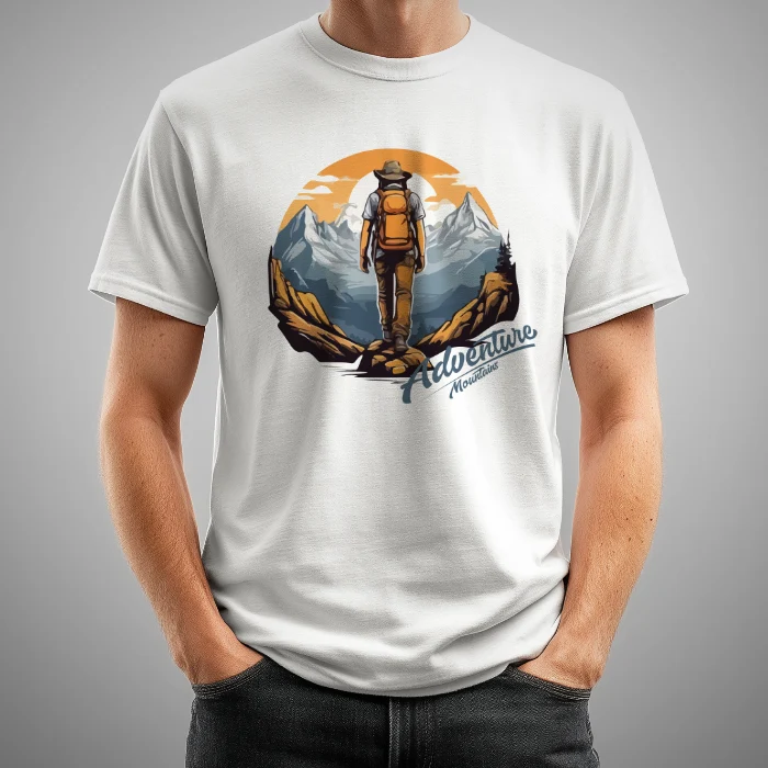 Camiseta aventura y montaña, con el texto «Adventure Mountains».