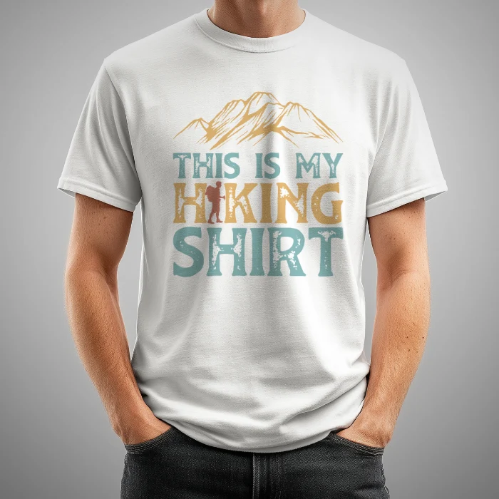 Camiseta aventura, montaña y senderismo, con el texto «This is my hiking shirt».